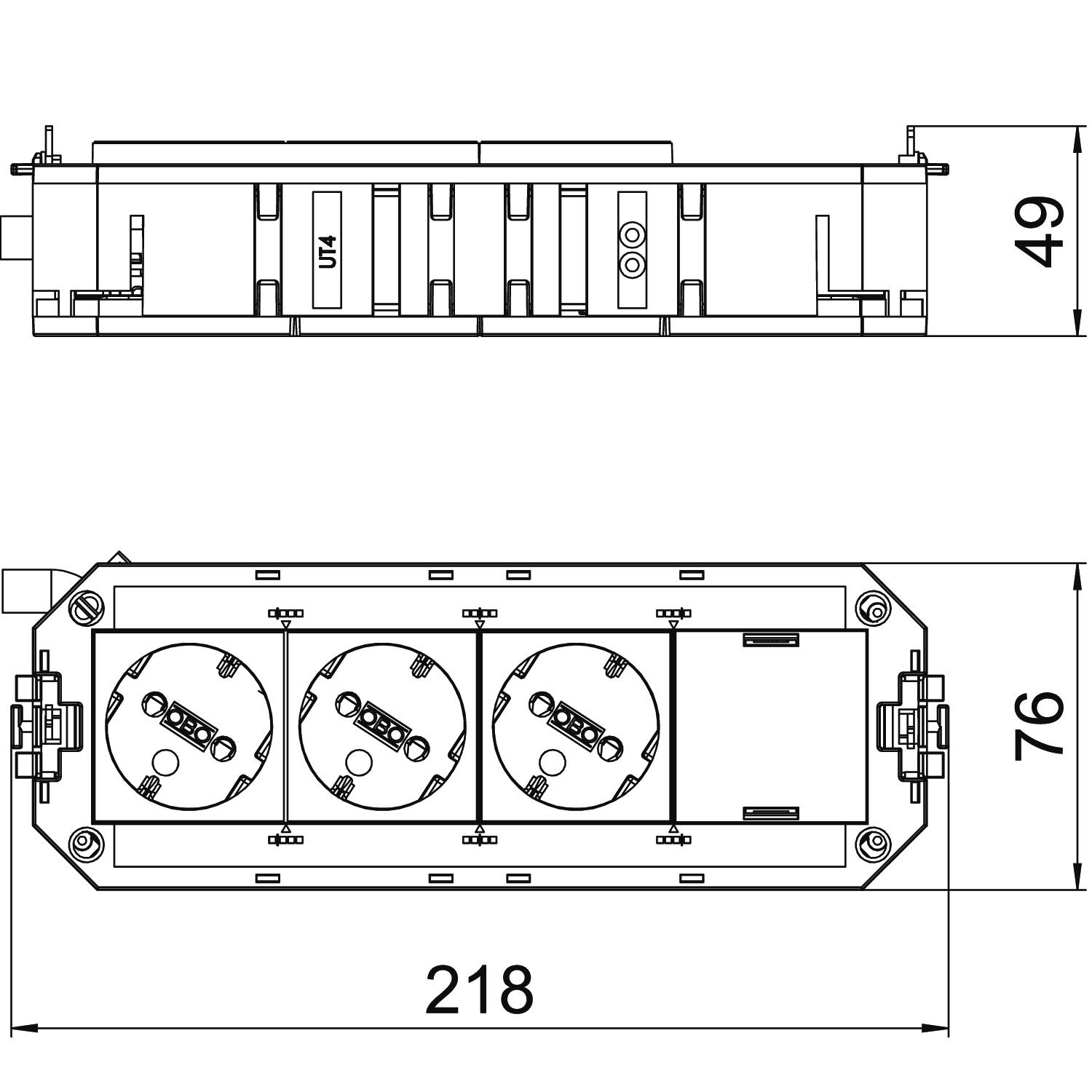 Описание продуктаThe ready-for-connection UTC4 universal support has 3 pre-installed 33° protective contact sockets in white and one blanking cover for retroinstallation of an installation device of the Modul 45 series.