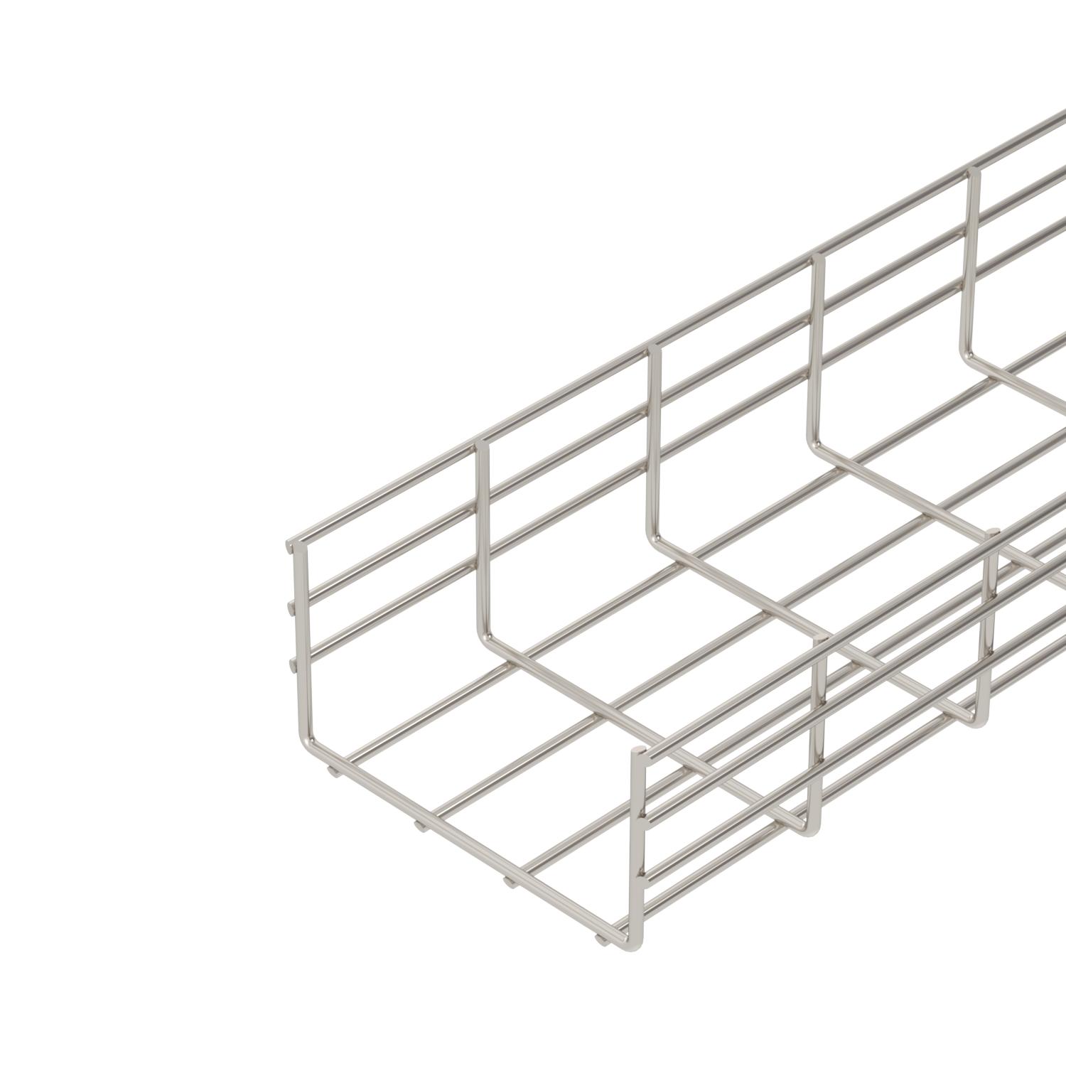 Описание продуктаПроволочный лоток из стальной проволоки, соединенной точечной сваркой, с боковыми стенками высотой 105 мм.