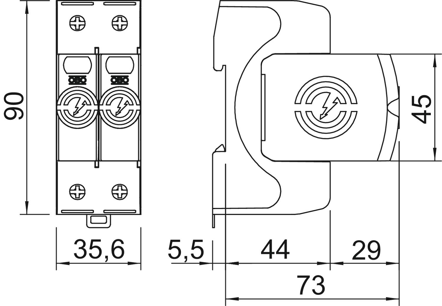 • токоотводящая способность до 40 кА (8/20) на полюс благодаря высокоэффективным варисторам;