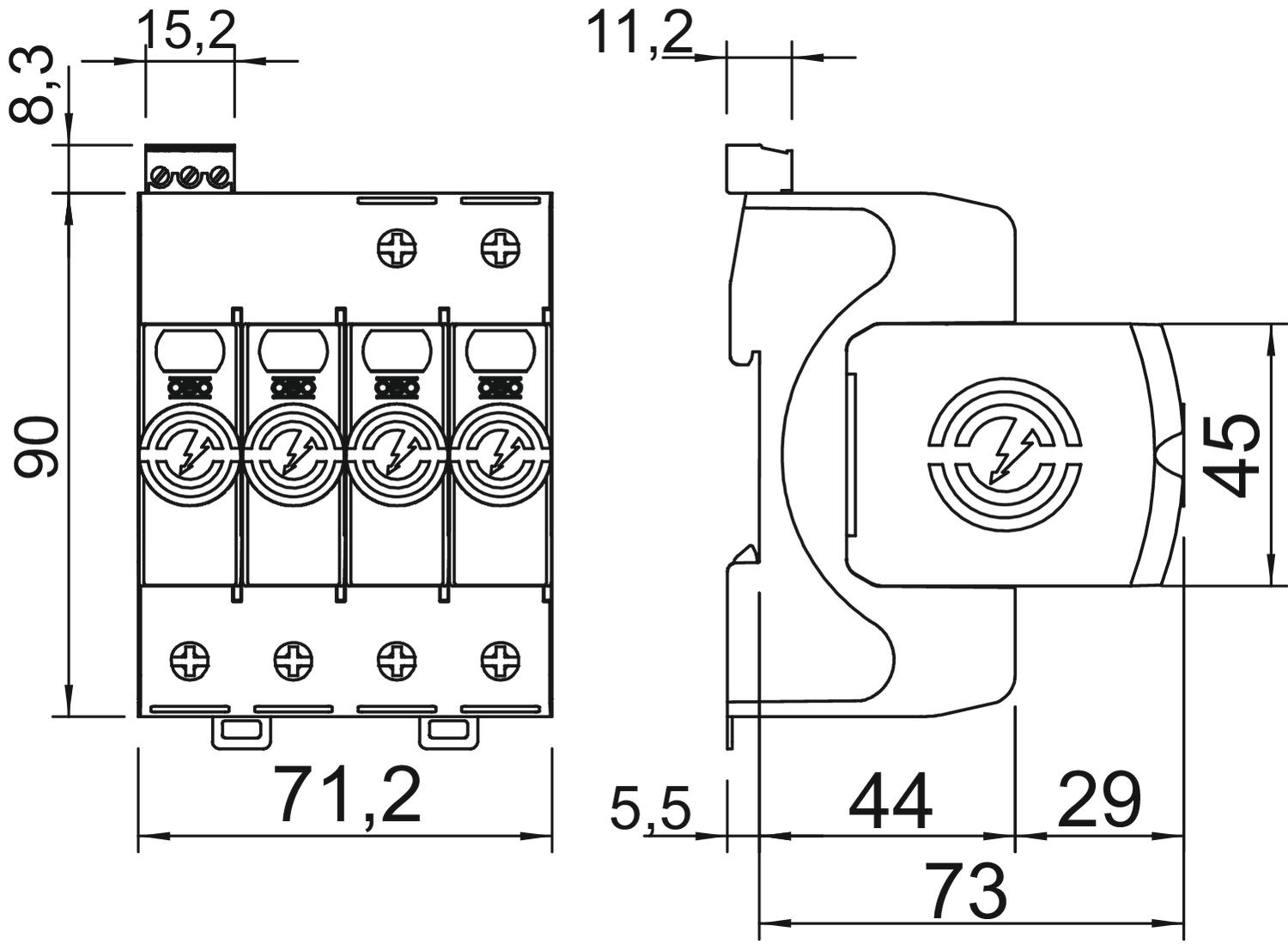 • токоотводящая способность до 40 кА (8/20) на полюс благодаря высокоэффективным варисторам;