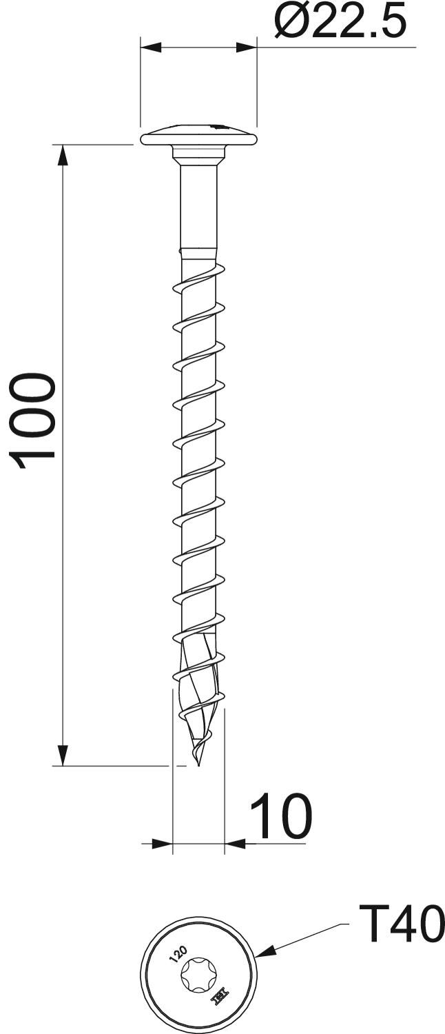 Винтовая система Torx Двойной нет Диаметр головки 22,5 mm Диаметр стержня 7 mm Длина 100 mm Закаленная поверхность да Материал Сталь Поверхность гальванически оцинкованный Размер 10x100 Размер D 10 mm Размер L 100 mm Форма головки Тарельчатая головка Цвет цинковый - Все виды