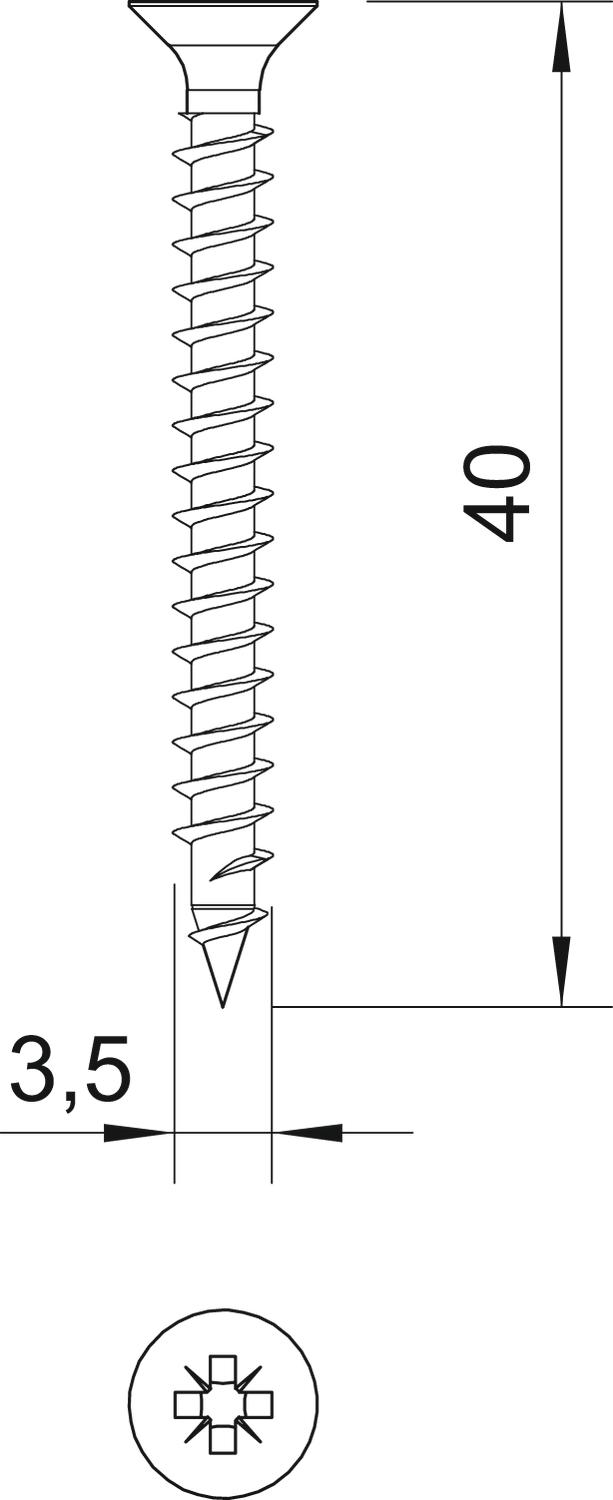 Винтовая система Pozidriv PZ Диаметр головки 6,5 mm Длина 40 mm Закаленная поверхность да Материал Сталь Поверхность гальванически оцинкованный Размер 3,5x40mm Размер D 3,5 mm Размер L 40 mm Форма головки Потайная головка - Все виды