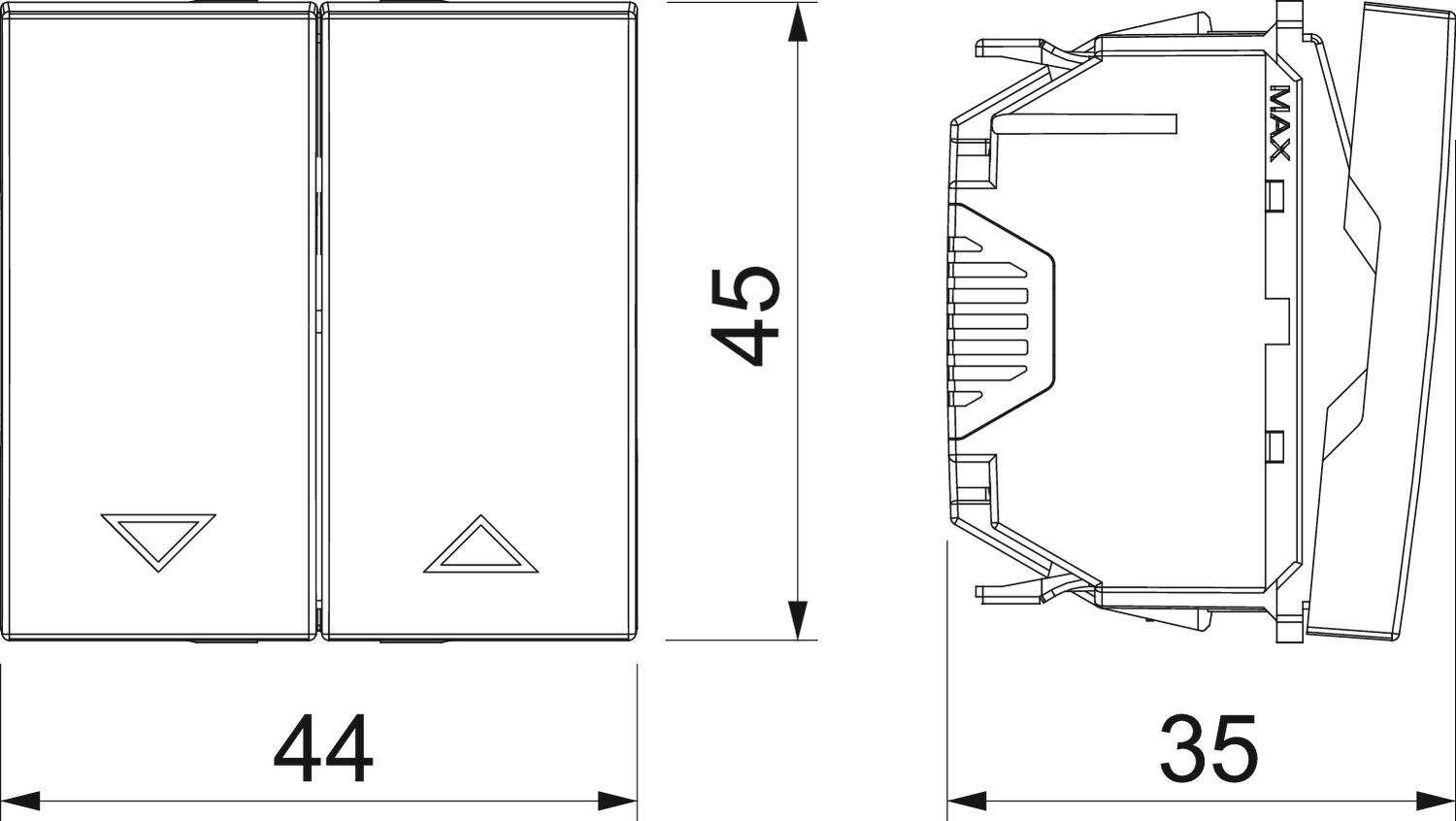 Описание продуктаКнопка управления рольставнями с электрической блокировкой, 1-контактная, 10 A, 250 V~, со штепсельными зажимами.